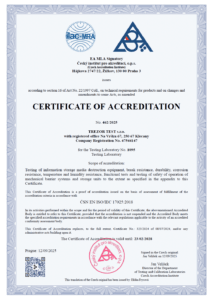 - zkoušky zařízení fyzického ničení nosičů informací nebo dat